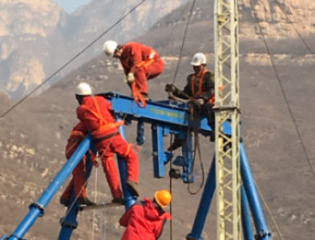 我們從研發2噸級輕型索道開始,逐步實現了4噸至8噸級重型索道的全覆蓋。2015年,我公司與新疆輸變電工程有限公司合作開發的8噸級重型索道在1000千伏蒙西至天津南線路11標段試點成功,應用重型索道完成了大牽引機(7.75噸)往高山塔位的運輸。我公司目前已擁有標準化輕型索道200多副,4噸及以上重型索道4副,所有索道支架均采用可拆卸式鋼管結構。具有年承攬500千伏及以上輸電線路索道運輸350公里的機具裝備和施工力量。截止2018年,在索道工程施工方面,公司共完成1000千伏浙北至福州等特高壓交流項目7個、±800千伏向家壩至上海等特高壓直流項目5個、500千伏錦屏至西昌等超高壓項目11個、220千伏線路工程2個,以上工程均安全準點完工,得到甲方單位的一致好評。索道工程業績遍及浙江、四川、江西、廣西、廣東、山西、陜西、河北、遼寧、新疆、西藏等全國多個省份。